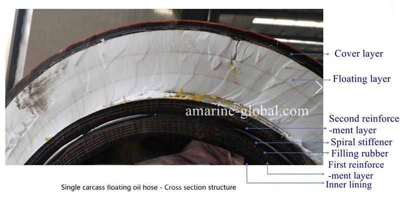 A standard marine hose is a multi-layer composite structure, optimized for strength, flexibility, and durability: